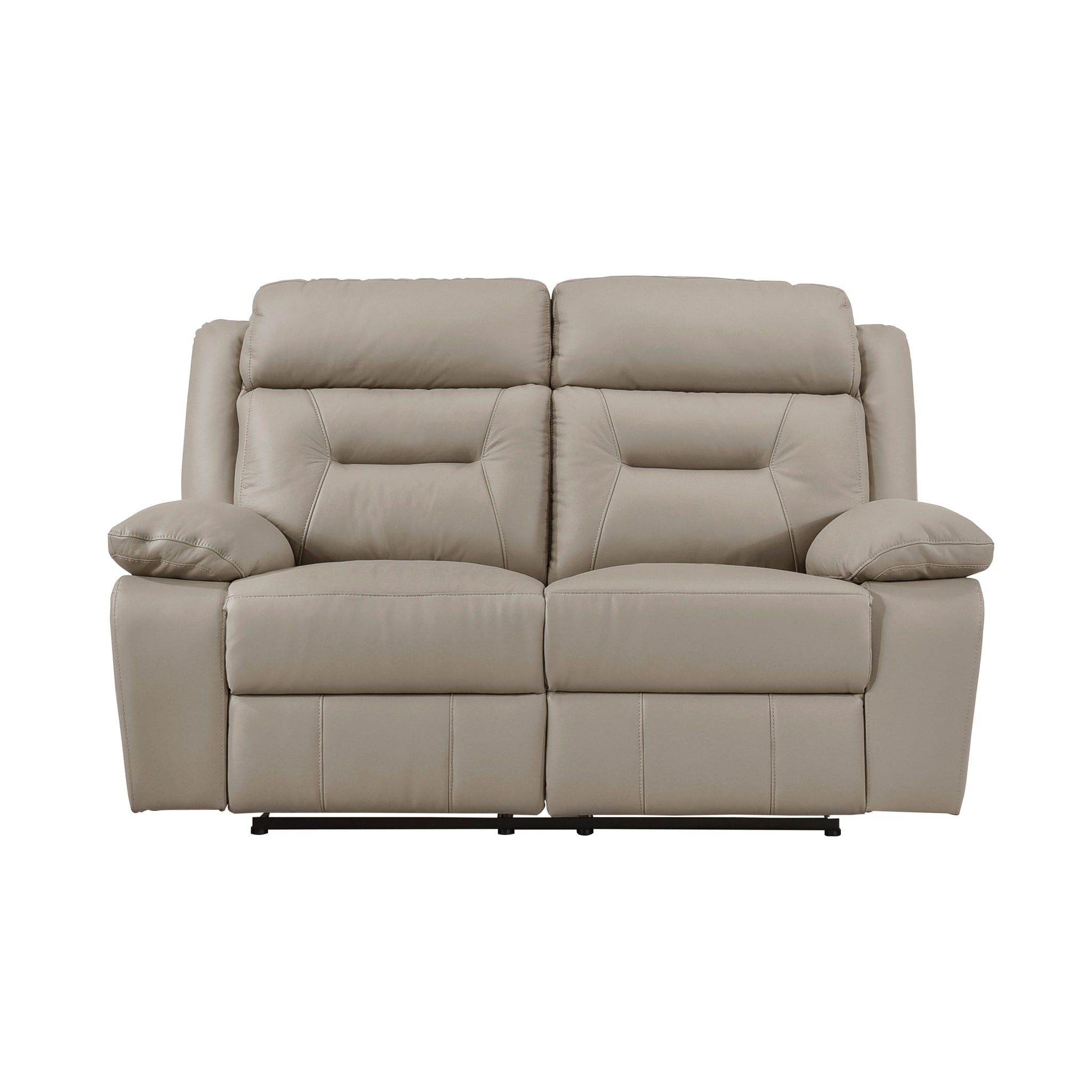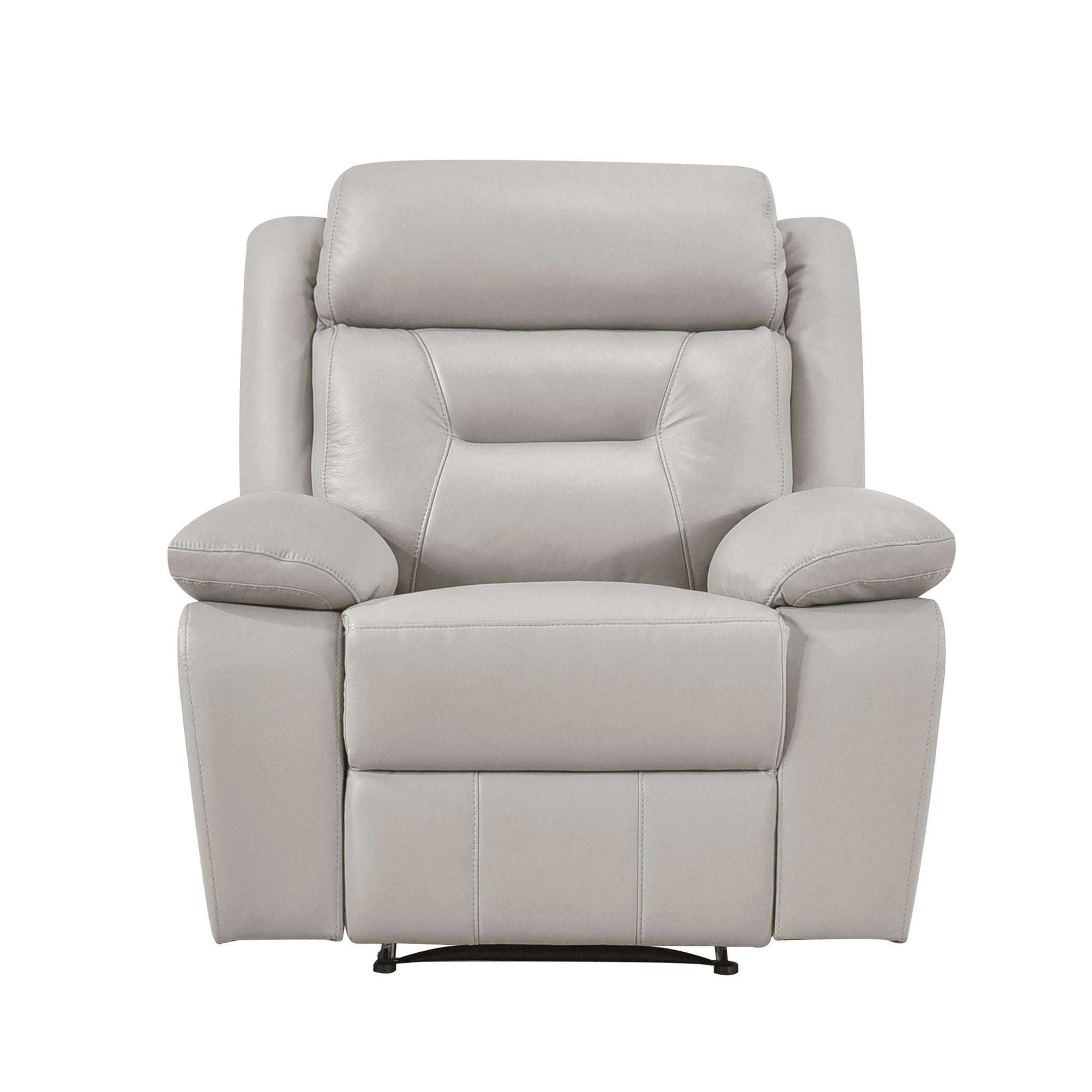 Designed with stylistic versatility and comfort in mind, the Laconia Collection’s addition to your home’s casual living room provides a comfortable gathering spot for your family and friends. The reclining ends of the sofa and love seat, as well as the reclining chair, are engaged with a pull of the side mounted tab. The transitional frame of the sofa, love seat, and chair is covered in 100 percent top grain leather where the body touches, with faux leather covering the remaining areas, its latte hue complementing your home’s décor.