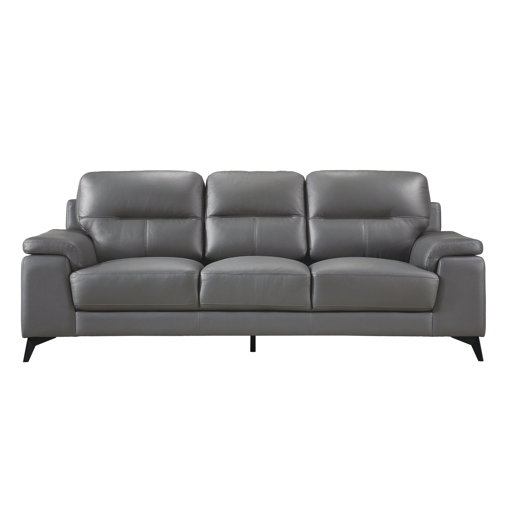 Styled for the modern home, the Mischa Collection blends the luxurious feel of leather with the comfort of plush seating. The optional silver or dark gray top grain leather cover, with faux leather, enhances the sleek profile of the collection. Contoured pillow-top arms and black metal legs further enhance the modern stance.
