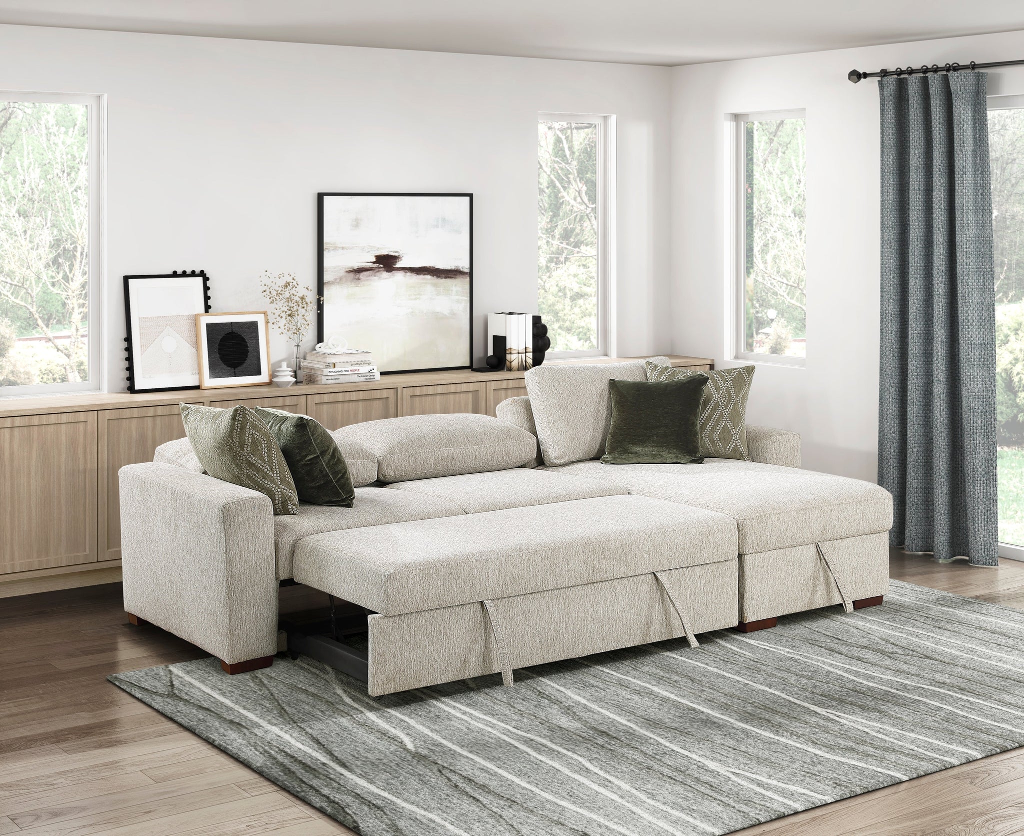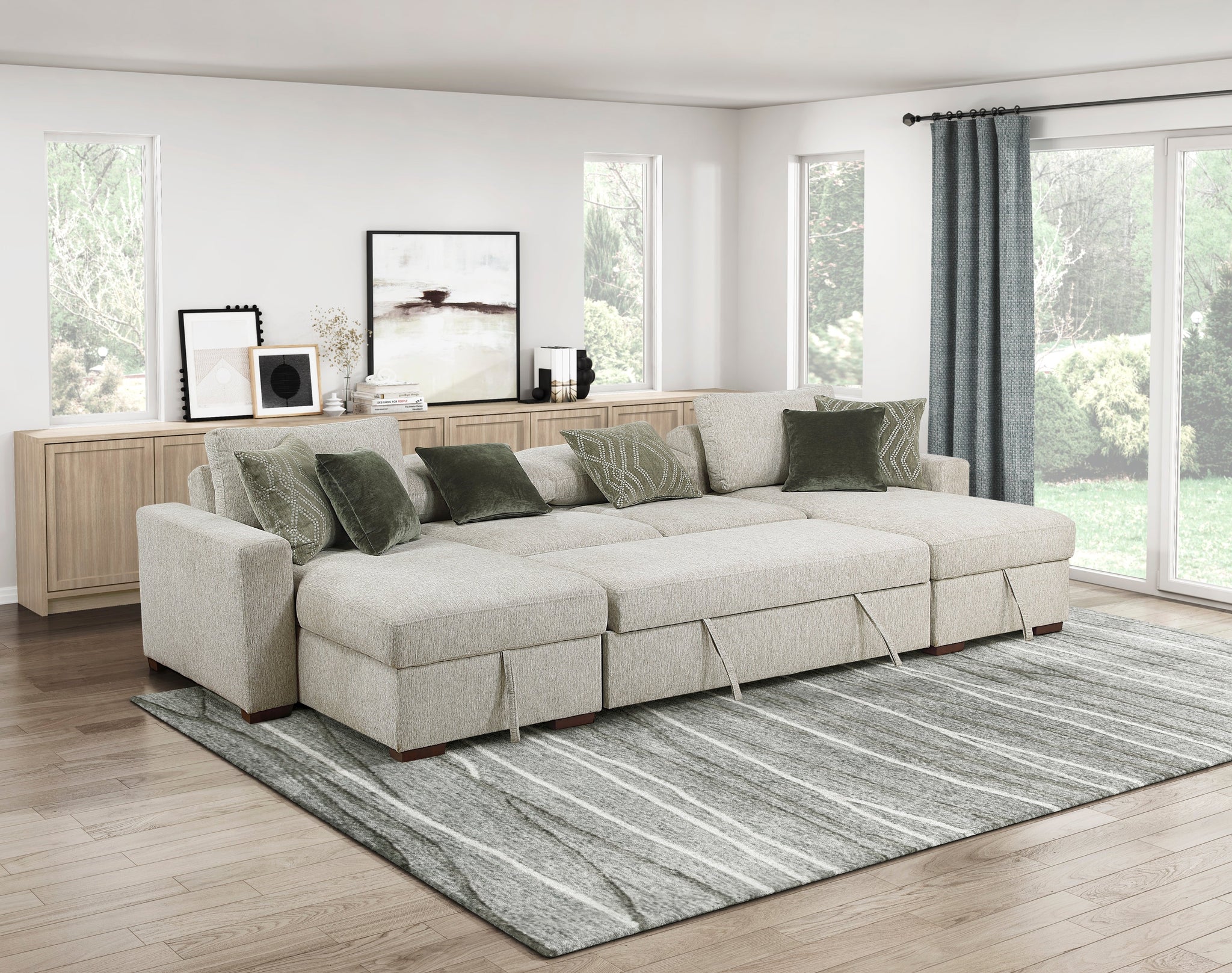 Transform your living space with this versatile and comfortable collection of modular seating, designed to adapt to your every need. Upholstered in a soft yet durable textured microfiber and accented with elegant espresso-finished solid wood feet, each piece offers both style and resilience. Enjoy supportive seating with high-density foam padding over pocket coils, and appreciate thoughtful details like reversible back cushions and removable covers for easy maintenance. From space-saving armless sofas and convertible sleepers to functional storage ottomans and chaises, and expansive sectional configurations with pull-out beds, this collection provides flexible solutions for seating, sleeping, and storage, all while maintaining a cohesive and inviting aesthetic in your modern home. Many pieces also include coordinating décor pillows to complete the look.